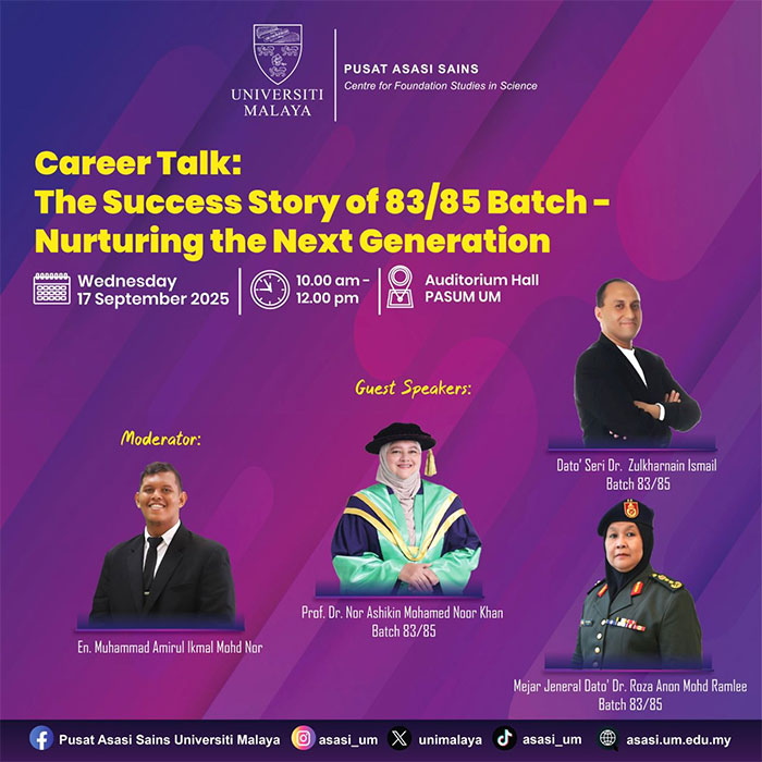 Sebagai Presiden Persatuan Alumni Pelajar Lepasan Asasi Sains UM (PLAS) mewakili seluroh warga PLAS, sukalah dikongsi sejarah sebagai antara batch kedua terawal memasuki Pusat Asasi Sains UM.