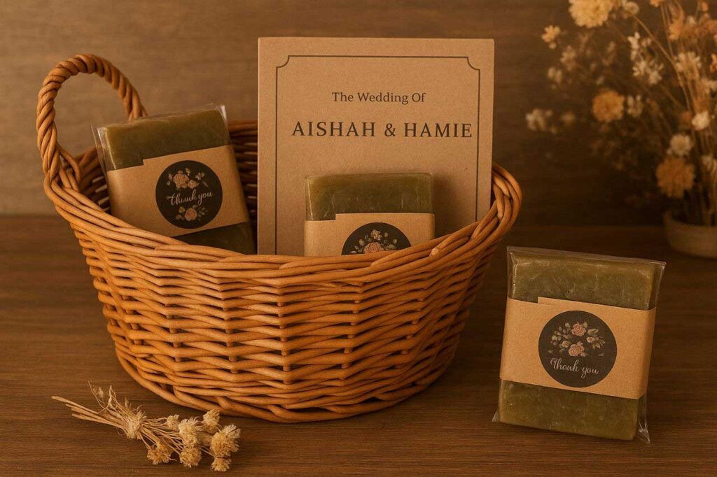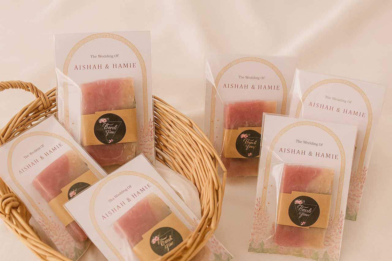 Tingkatkan seri majlis perkahwinan anda dengan doorgift eksklusif RM4 daripada RJ Naturals! Setiap doorgift ialah sabun muka handmade dari sumber semulajadi, bebas bahan pengawet dan kimia berbahaya. Diperkaya dengan vitamin E dan C, sabun ini membantu mengekalkan kulit lembut, segar dan sihat. Hadiahkan tetamu anda sesuatu yang bermakna, berkualiti dan bermanfaat – bukan sekadar cenderamata biasa.